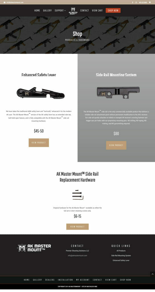 Redesigned logos, crafted by Derek Walker of Dnubb Design LLC, really bring the branding of this site home. But the branding doesn’t stop at logos on the site. Derek brought revamped designs to the physical packaging materials used on the AK Master Mount™ line of products. Now, this company’s digital presence matches its physical presence.