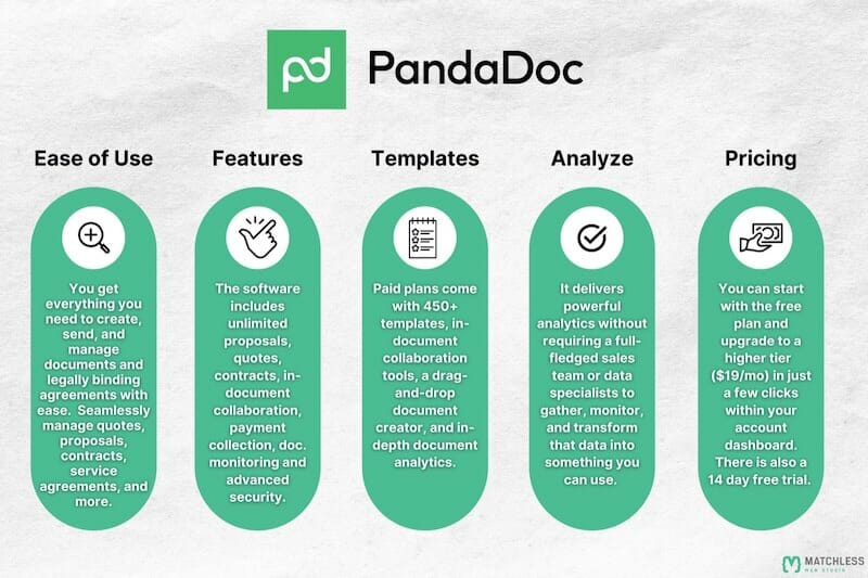 PandaDoc’s templates remove compliance concerns, since they’re all industry-specific. Couple that with the platform’s user and guest access for collaborative review of the fine print and making revisions, and you can rest assured any contracts you create in PandaDoc are iron-clad.